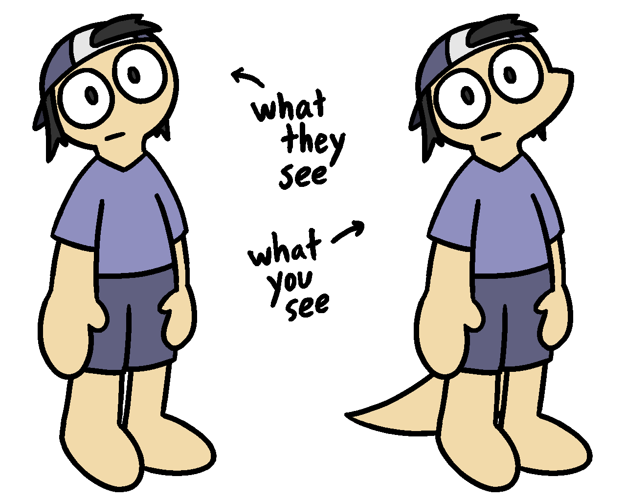 Peter liked having a lizard tail so much that he went to class with it one day, using magic to make it invisible so nobody would notice. But Melanie was in his class too, and she could tell what was actually going on. Now she has a huge crush on him, but she's afraid he'll be embarrassed if he finds out she knows his secret.